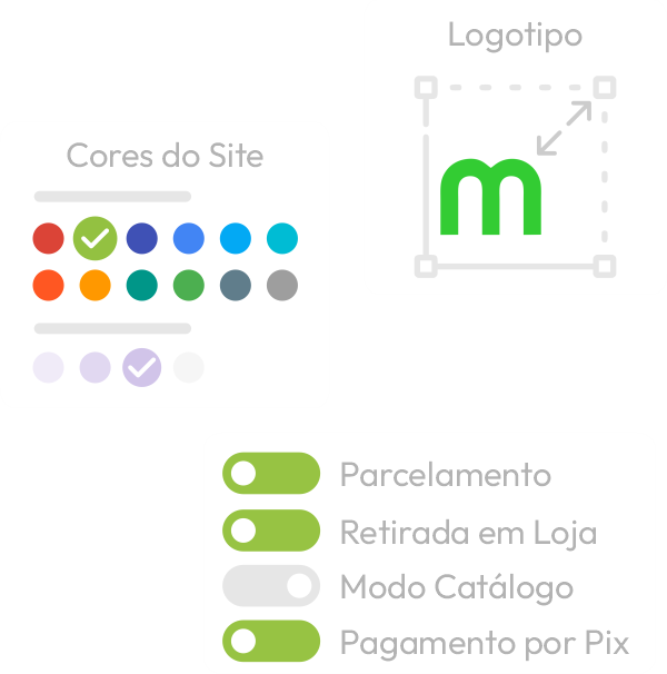 Conecte o Mercado Pago, ative Pix, boleto e cartão, configure descontos por forma de pagamento, regras de parcelamento e controle como os preços são exibidos no site.